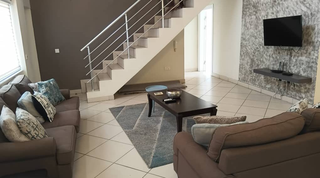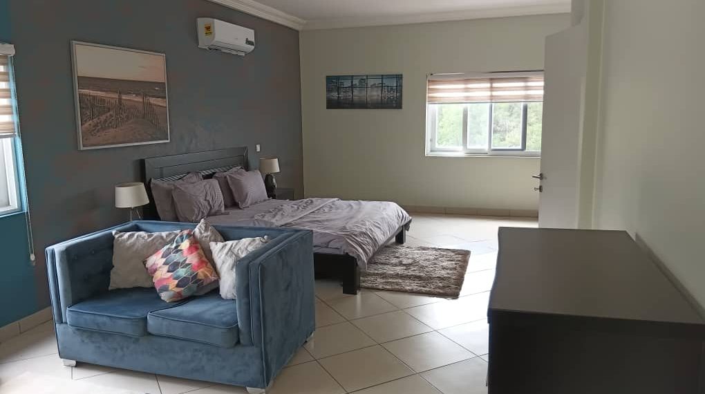 An executive furnished three (3) bedroom apartment with a shared swimming pool to let at North Ridge near BNI office. Each room has A/c, wardrobe, etc. It also comes with dining and a furnished kitchen. The property has electric fence, garden, 24/7 security, etc. It also has polytanks, standby gen set. The area has uninterrupted water flow, and it is renting for US$2,800 per month (negotiable).